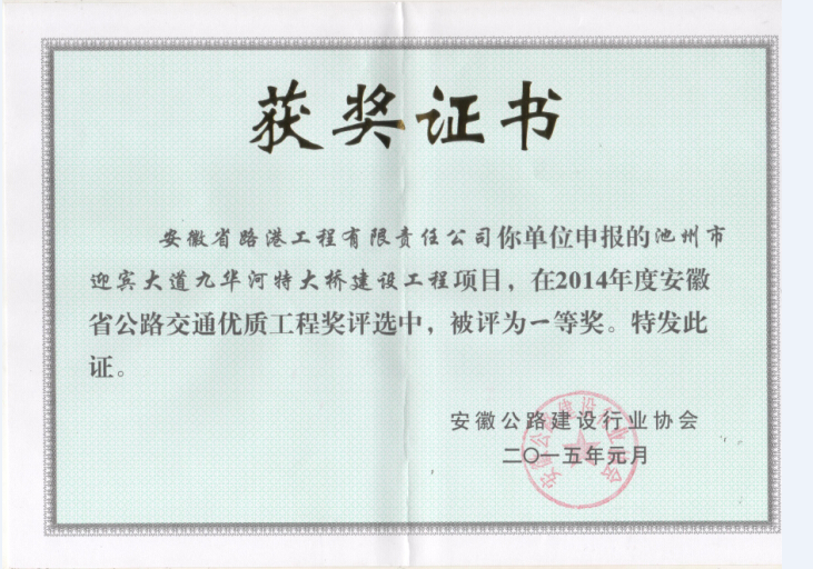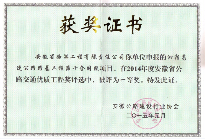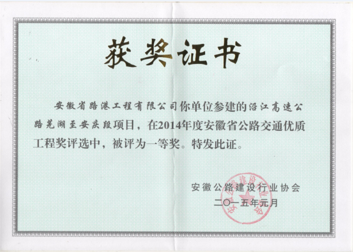 歷年榮獲的安徽省公路交通優質工程獎一等獎