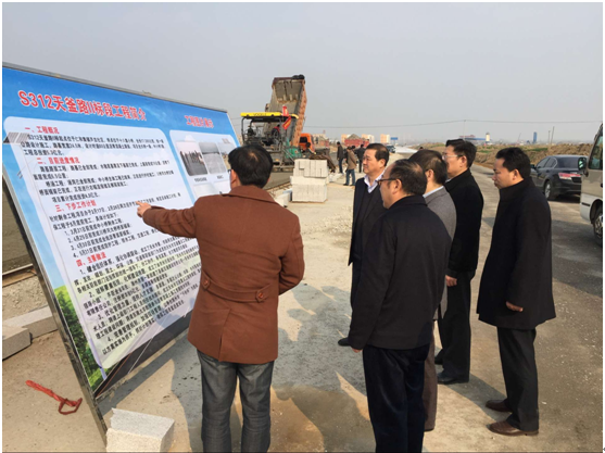 2016年3月11下午,滁州市副市長劉茂松交通局局長吳勝智在天長市市長朱大綱、副市長劉正田及交通局局長於旌方、趙玉龍的陪同下蒞臨S312天釜路改建II標項目部視察工作。
