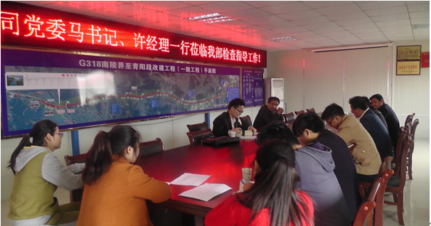 2016年4月7日,公司黨委副書(shū)記馬斌、黨委工作部副主任許志興一行蒞臨G318南陵界至青陽(yáng)段改建項(xiàng)目召開(kāi)專(zhuān)題會(huì)議,宣布成立項(xiàng)目黨支部,任命陳磊磊同志為黨支部書(shū)記兼紀(jì)檢委員。