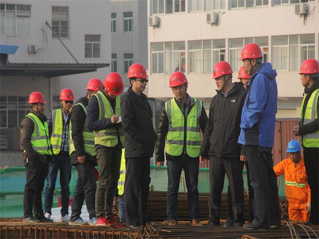 在銅陵路高架項目部,戴總一行深入施工現場,聽取了項目負責人關于主體施工安全、質量和現場文明施工情況的匯報,并和現場技術人員進行了親切交談。戴總強調:項目部要科學組織,周密部署,保證“安全、質量、進度、效益、信譽”工作目標的實現,嚴把過程控制和工序銜接,加大對各施工隊伍的管理和服務力度;希望項目部職工開拓創新、砥礪前行,發揚年輕人有朝氣、有活力、有干勁的精神,努力做好本職工作,并在工作中多鍛煉,積極進步。