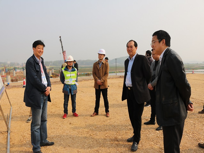 在G347六標官埠河大橋的施工現場,程躍輝聽取了項目負責人關于工程建設情況的匯報,充分肯定了項目建設取得的成績。他要求:一是要加強項目建設管理,對進場的施工人員和設備進行嚴格檢查;二是要加強項目規范化建設,不僅在施工和工藝方面做到標準化,同時管理也要做到標準化。程躍輝強調,G347項目建設投資大,線路長,省交通運輸廳高度重視,市交通、公路部門以及項目部都要加大工程建設管理力度,將G347建設成一條精品路。