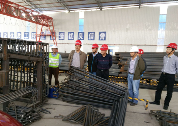 王耀明副總經理一行先后察看了項目部安全體驗館、鋼筋加工廠、梁板預制場生產情況,聽取了項目負責人關于工程進度、安全文明施工、質量控制、標準化建設等情況的匯報。王總對項目總體進展表示滿意,對項目的復雜性、緊迫性表示理解,就本項目存在的設計疑問給予了充分答疑并提出合理的解決方案,建議項目部按照時間節點做好各項統籌安排,快速完成各施工節點任務;嚴把工程質量,按照規范標準和施工標準化,精心組織,嚴格把關,確保施工質量,樹立項目形象。