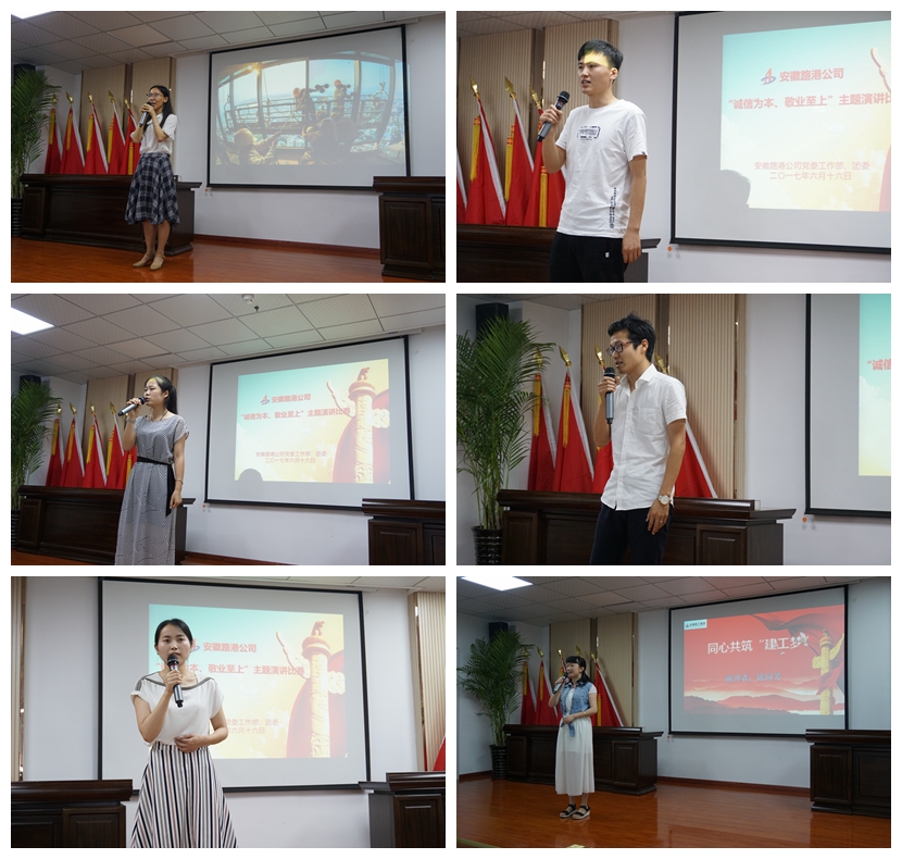 6月16日下午,安徽路港公司在安建大廈22樓會議室舉辦“誠信為本、敬業至上”主題征文演講比賽,公司紀委書記、工會主席干戈,所屬各單位黨工團負責人、公司機關職工和各參賽選手共計60余人參加。