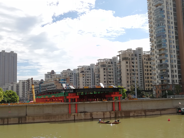 目前,項目部已完成北岸全部樁基施工,南岸剩余11根樁基施工正在緊張有序地進行中。北岸現場施工進度正按照計劃逐步推進。主橋鋼結構頂推作為現階段施工重點,已完成橋面板吊裝和人行道板吊裝,預計9月中旬完成橋面板、人行道板焊接和拱肋支架搭設安裝工作,9月20日具備頂推條件。