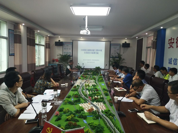 825日,安慶市交通質量監督局檢查組一行赴105國道太湖段改建工程PPP項目進行督查,太湖安建投資公司總經理朱小敏、副總經理曹友良、項目部負責人等陪同。