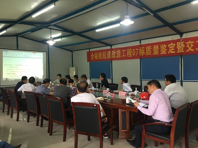 2017年9月5日,由安徽省港航建設投資集團有限公司組織的合裕線航道改造工程07標質量鑒定暨交工驗收會順利召開。省交通質監局、省港航局、合肥市港航管理局、合肥港國際集裝箱碼頭有限公司等相關參建單位負責同志及3位專家參加會議,安徽路港公司副總經理張瓊應邀出席。