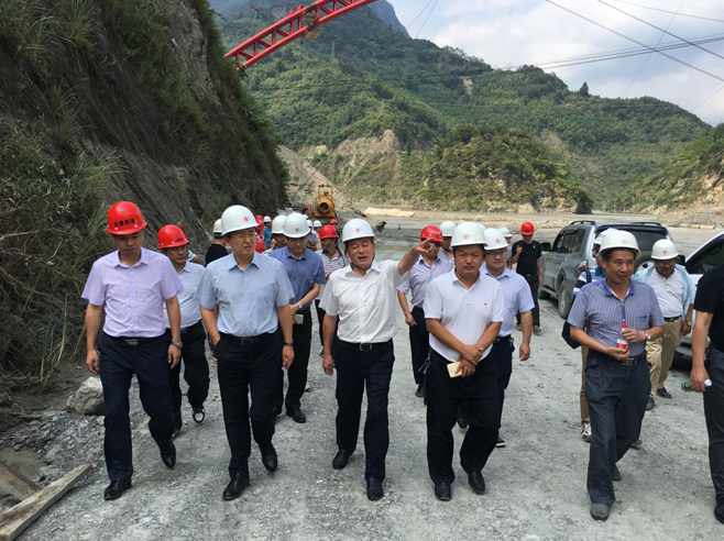 9月7日,四川省交通運輸廳副廳長趙長利、綿陽市副市長羅蒙、綿陽市交通運輸局局長寇子勝、北川羌族自治縣縣長瞿永安一行到安徽路港北川項目調研,公司副總經理張俊、項目負責人等陪同。