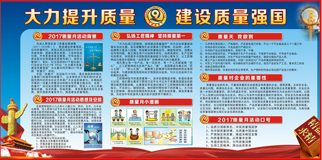 一、統(tǒng)籌規(guī)劃,明確“質(zhì)量月”活動內(nèi)容。公司總工辦編制切實可行的實施方案,下發(fā)《關于開展2017年“質(zhì)量月”活動的通知》,明確活動內(nèi)容及相關要求。