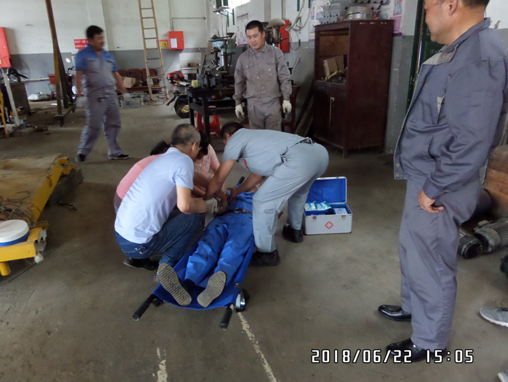 演練模擬一名維修人員在設備維修時,受到機械傷害,應急小組接到事故報告后,立即啟動應急預案,按照既定程序,妥善、及時處理受傷事故。