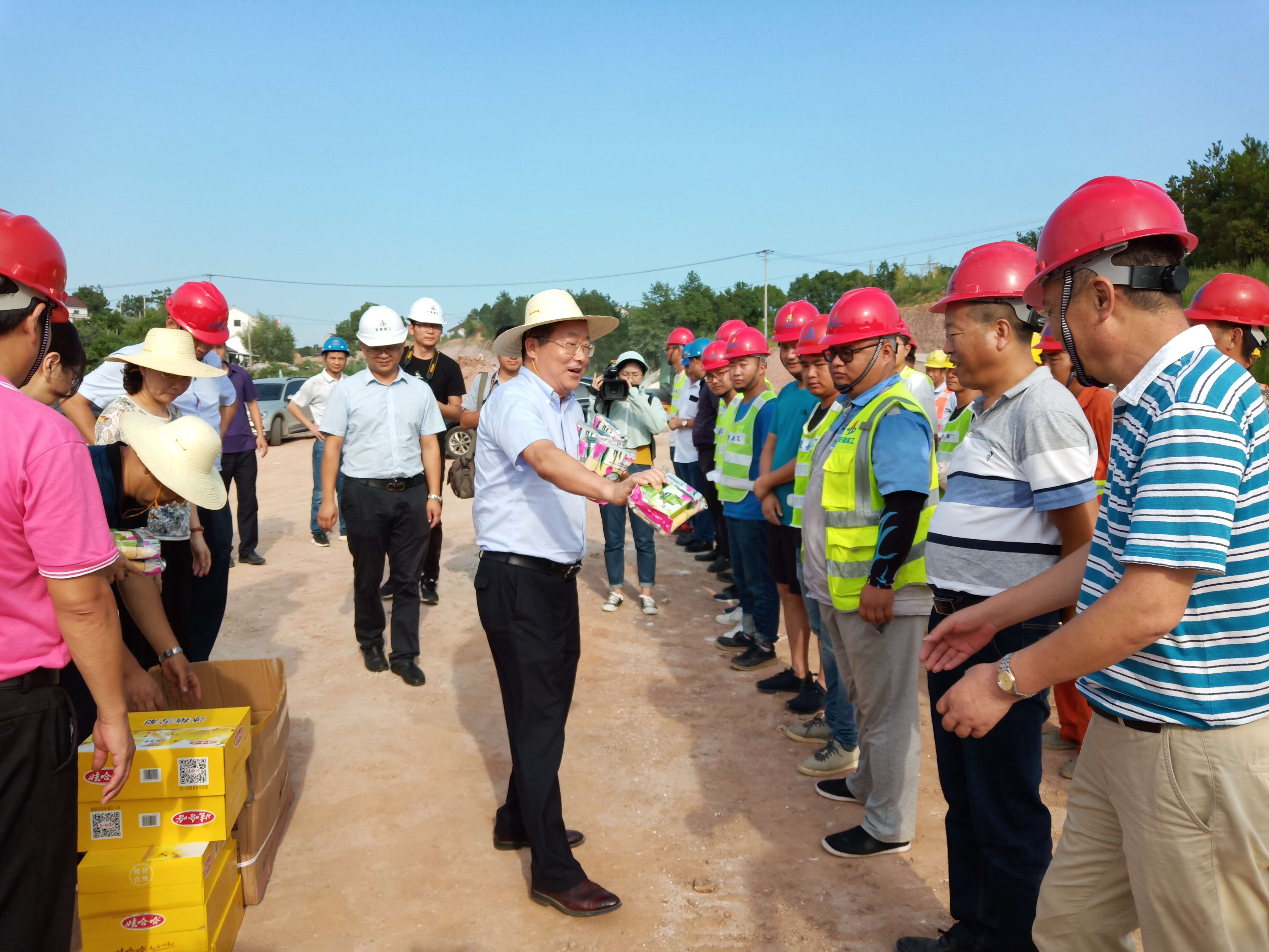 近日,太湖縣委縣政府、太湖縣總工會,105國道指揮部一行赴G105國道項目部施工現場開展“送清涼”活動。