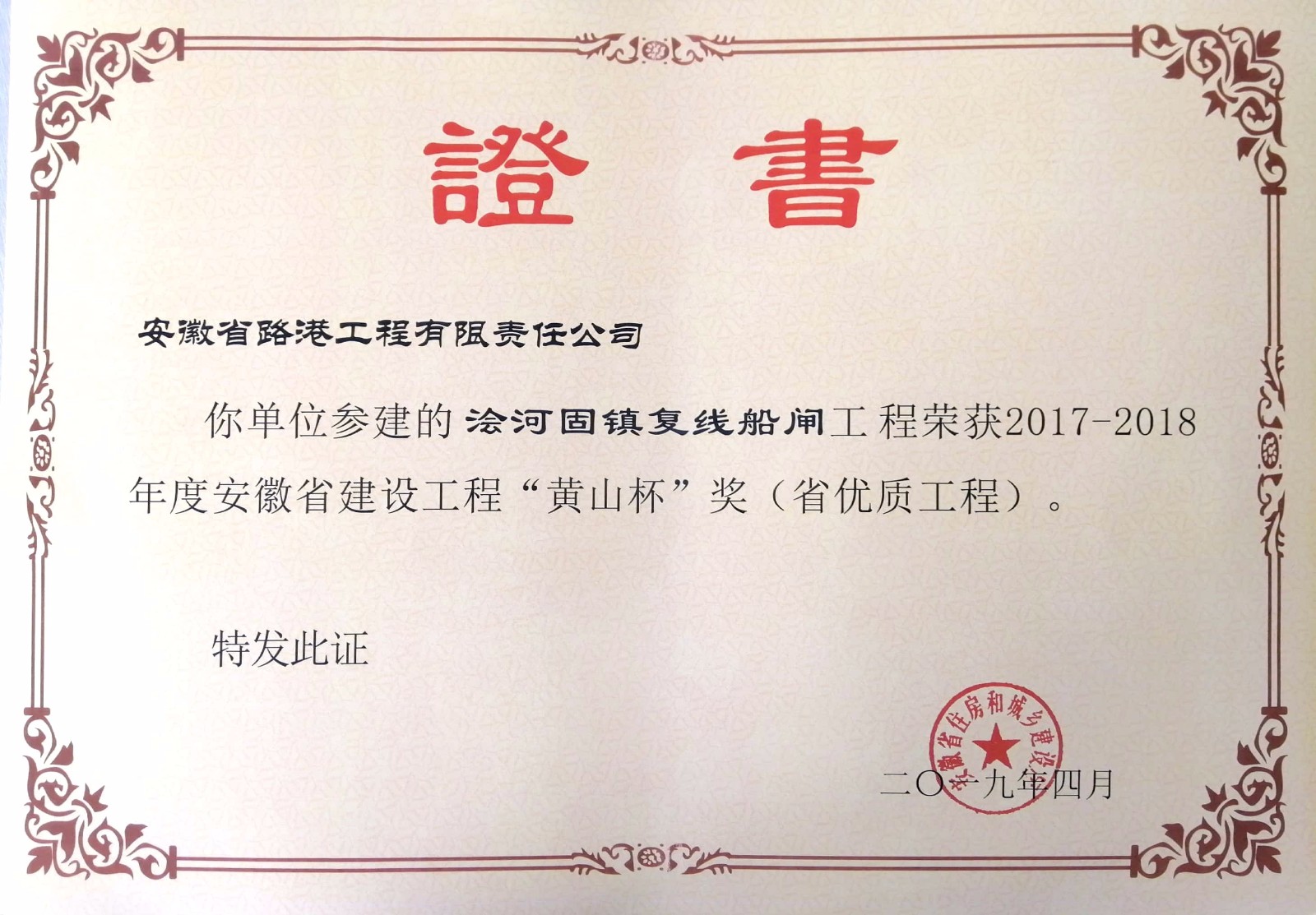 近日,從安徽省住房城鄉建設廳傳來喜訊,安徽路港公司三個項目喜獲2017-2018年度安徽省建設工程 “黃山杯”獎(省優質工程),涵蓋公路、市政、水運三項類別。分別是由安徽路港牽頭申報的六安市梅山南路橋工程、澮河固鎮復線船閘工程和與建設單位聯合申報的蚌淮高速高塘湖特大橋工程。