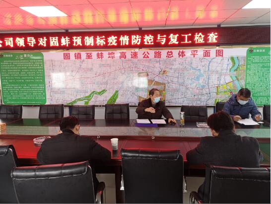 2月26日,公司董事長李振標(biāo)、投資發(fā)展部經(jīng)理李孝華赴二分公司固蚌高速GB-1標(biāo)開展疫情防控及復(fù)工復(fù)產(chǎn)專項檢查,分公司總經(jīng)理喬樹軍參與檢查。