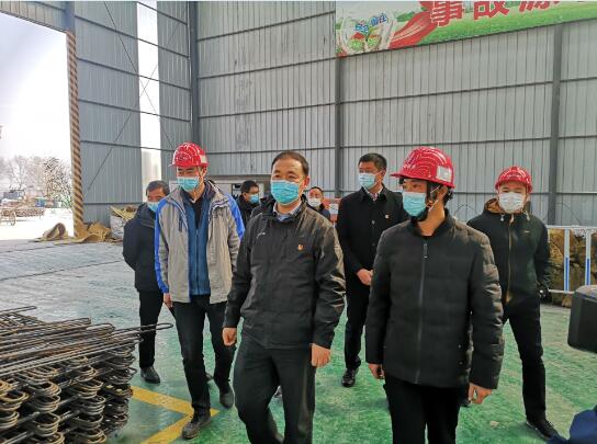 吳永彬書記一行來到施工現場,深入鋼筋加工場、砂石儲料倉,了解鋼筋、砂石等原材料庫存、采購來源、購買價格等。項目負責人向吳永彬書記詳細匯報了項目部疫情防控和復工復產進展。
