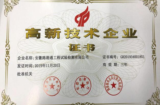3月9日,科學(xué)技術(shù)部和高技術(shù)產(chǎn)業(yè)開發(fā)中心聯(lián)合發(fā)布《關(guān)于2019年第二批高新技術(shù)企業(yè)備案的復(fù)函》(國(guó)科火字〔2019〕6號(hào)),安徽路港通工程試驗(yàn)檢測(cè)有限公司取得“高新技術(shù)企業(yè)”榮譽(yù)證書。
