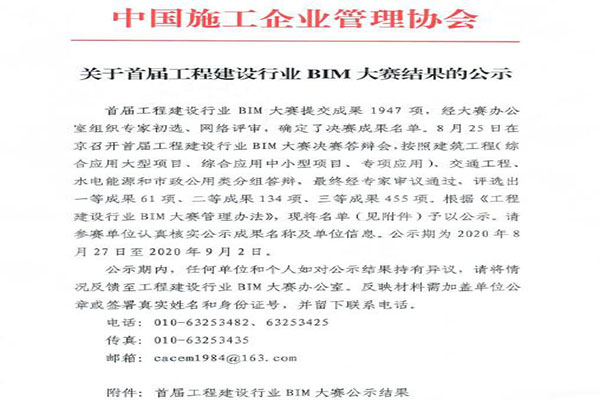 近日,安徽路港市政分公司提交的“興業大道項目BIM技術應用成功”喜獲中國施工企業管理協會首屆工程行業BIM大賽二等獎。