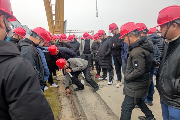 培訓(xùn)以室內(nèi)培訓(xùn)和現(xiàn)場講解相結(jié)合的方式進(jìn)行。1日上午,參培人員在酒店會(huì)議室學(xué)習(xí)了特種設(shè)備基礎(chǔ)知識(shí)、檔案管理、設(shè)備報(bào)檢、安拆方案編制注意事項(xiàng)等,同時(shí)對(duì)特種設(shè)備安全法和國家新頒布的相關(guān)政策法規(guī)進(jìn)行深入學(xué)習(xí)。下午,參培人員赴合樅預(yù)制標(biāo)參觀輕型T梁生產(chǎn)線,并在圓管涵預(yù)制區(qū)接受現(xiàn)場授課,學(xué)習(xí)起重設(shè)備安全裝置及操作注意事項(xiàng)。袁民作總結(jié)講話,他指出,隨著公司產(chǎn)值提高,特種設(shè)備數(shù)量也逐漸增多,為保障安全施工,對(duì)安全管理人員的特種設(shè)備安全知識(shí)培訓(xùn)勢在必行。
