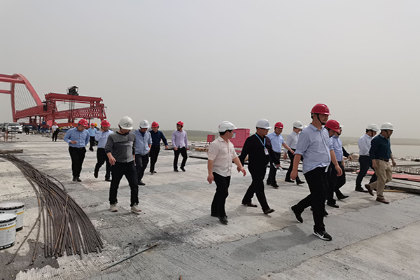 5月7日,省交控建設管理有限公司總經理黃學文、副總經理房濤一行赴二分公司固蚌高速項目檢查指導,路港公司副總經理錢玉寶、二分公司總經理喬樹軍參與檢查。