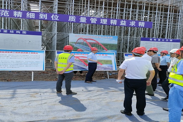7月8日,淮北市人大秘書長劉政一行赴二分公司臨渙船閘橋梁改建施工現場調研,市交通運輸局、市人大城建環(huán)資委參與調研。