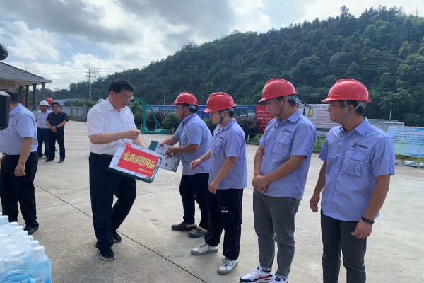 孫革新親切詢問項目職工工作生活情況,將礦泉水、毛巾、清涼油等消暑用品一一分發到大家手上,叮囑大家做好防暑降溫工作。孫革新對項目全體職工的辛苦付出給予充分肯定,并要求,項目部搶抓晴好天氣,加緊施工,做好防暑降溫和勞動保護措施,為高溫下堅守崗位的一線人員創造良好的工作條件,確保項目進度穩步推進。