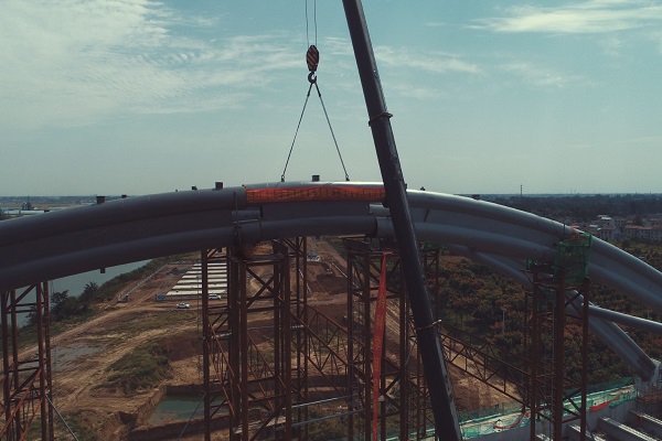 9月23日,臨渙船閘橋梁改建施工項目鋼管拱正式合龍。