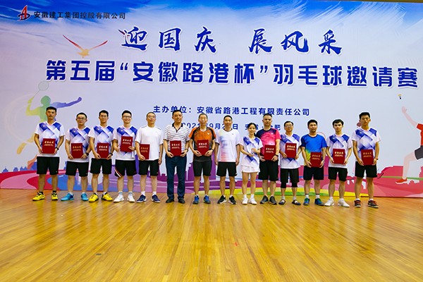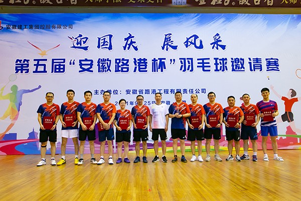 9月25日,第五屆“安徽路港杯”羽毛球邀請賽在安徽省體育中心成功舉辦。省總工會基層工作部部長程衛斌,省交通運輸廳建設市場管理處處長楊菲玲、省交通運輸廳工程質量安全管理服務中心副主任熊偉,合肥市重點工程建設管理局副局長、黨組成員鄭浩,安徽建工集團股份有限公司總經理李有貴,安徽省高路建設有限公司黨委書記、董事長胡紅雨,省交通規劃設計研究總院有限公司總經理徐宏光,合肥交通投資控股有限公司總會計師王菊,合肥市建投集團基礎設施建設部部長王前,中國化學工程第三建設有限公司副總經理趙亞明,建工集團股份有限公司副總經理朱忠明,公路橋梁工程有限公司黨委副書記、總經理張俊,安徽水利開發有限公司副總經理朱珍宏,安徽路港黨委書記、董事長李振標,黨委副書記、總經理錢葉琳,黨委副書記、工會主席仇多維等16位領導出席開幕式,仇多維致開幕辭,運動員和裁判員代表分別進行了宣誓,李有貴宣布比賽開幕。