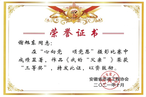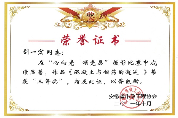 公司團委攝影社團選送作品榮獲安徽省市政工程協會攝影比賽三等獎