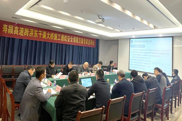 11月14日,《壽潁高速跨淠東干渠大橋施工通航安全保障方案》(以下簡稱《保障方案》)專家咨詢會在淮南市順利召開,淮南市交通運輸局海事處處長董春剛主持會議。