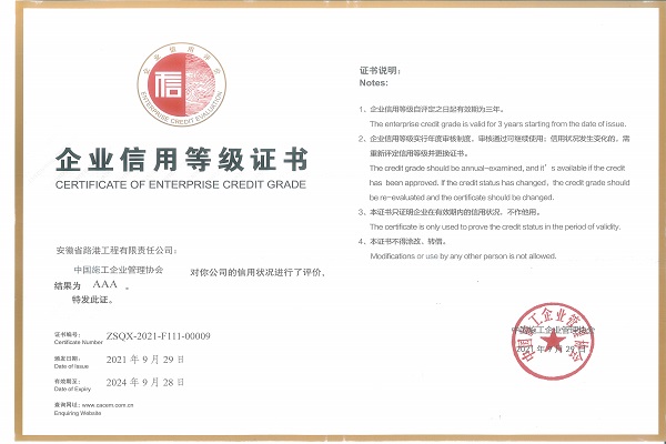近日,安徽路港順利通過中國施工企業(yè)管理協(xié)會2021年度“AAA”信用復(fù)評,充分展現(xiàn)了公司誠信經(jīng)營、守信重諾的良好企業(yè)形象。下一步,公司將進一步加強誠信建設(shè),發(fā)揮誠信經(jīng)營作用,推動企業(yè)可持續(xù)發(fā)展。