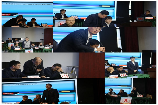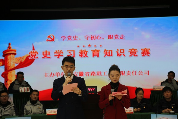 12月18日下午,安徽路港公司“學(xué)黨史、守初心、跟黨走”黨史知識(shí)競(jìng)賽在安建大廈3樓會(huì)議室成功舉辦。建工控股紀(jì)委副書(shū)記,股份公司黨委委員、紀(jì)委書(shū)記龔志酬,集團(tuán)黨委工作部副部長(zhǎng)、團(tuán)委書(shū)記聶猛,安徽路港公司黨委書(shū)記、董事長(zhǎng)李振標(biāo),黨委副書(shū)記、總經(jīng)理錢葉琳,黨委副書(shū)記、工會(huì)主席仇多維,黨委委員、副總經(jīng)理錢玉寶,黨委委員、紀(jì)委書(shū)記張?chǎng)巫鳛樵u(píng)委出席活動(dòng),李振標(biāo)為黨史知識(shí)競(jìng)賽活動(dòng)致辭。共有來(lái)自公司機(jī)關(guān)、司屬各單位的16支參賽隊(duì)伍的48名選手參加。