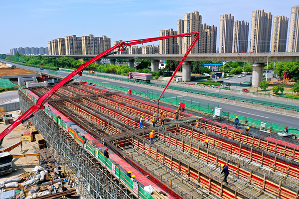 雨山東路第一聯現澆箱梁頂板正在施工