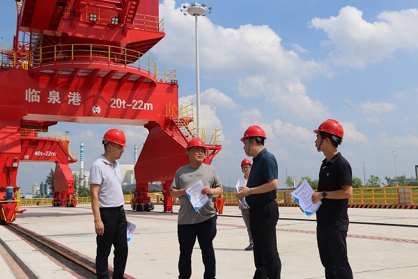 7月13日,臨泉縣交通運輸局黨組書記、局長郭躍翔,副局長張啟海一行赴阜陽港臨泉港區綜合碼頭考察調研。
