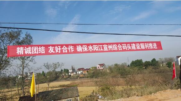 11月28日上午,宣州港綜合碼頭上空天藍云白、工地彩旗飄揚,在水陽江總監辦總監姚大發的主持下,在宣城市指揮部、區指揮部、宣城海事局以及港投項目辦的共同見證下,安徽路港水陽江宣州綜合碼頭正式開工建設。