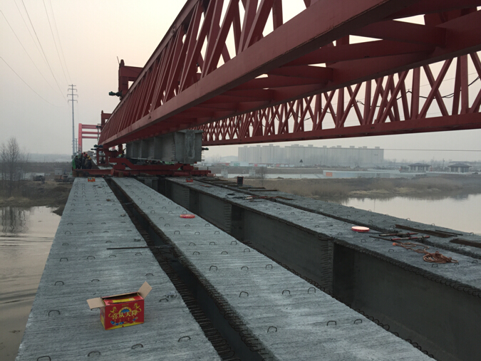 S101橋從2015年12月18號開始進行新建引橋T梁架設,歷時17天,共計架設35片T梁(包括5片20米T梁、15片30米T梁,15片35米T梁分別位于拱橋的兩側)。其中在T梁架設的最后一跨施工中,由于老橋T梁結構受力不均勻,導致架橋機無法正常開展吊裝工作。經過項目部與業主及監理單位的反復溝通驗證后,采用吊車與架橋機配合使用,分散受力,最終成功完成T梁架設工作。此目標節點完成,意味著本橋全面進入橋面系作業。項目部將加班加點,統籌安排,盡快完成剩余施工任務,為試通行節點目標打下堅實基礎。
