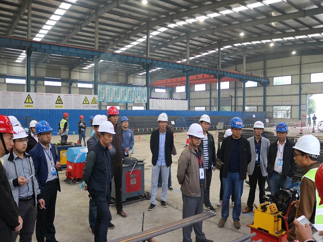 項目總工李長春詳細介紹了鋼筋加工場的規劃、建設情況以及樁基鋼籠筋加工的施工工藝和流程,并由工人現場演示了鋼筋籠精細化加工制作的全過程?,F場觀摩完畢后在會議室召開了交流會,與會人員對該項目部標準化建設及精細化施工均給予了高度評價。