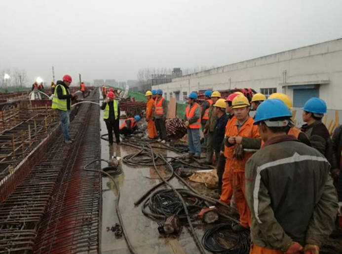 此次現澆內容為主線橋第二十四聯現澆箱梁底腹板,澆筑混凝土1700方,用時20小時。為確保現澆箱梁首次砼澆筑各工序的順利進行,項目部于21日召開現澆施工現場交底會,明確分工,責任到人,制定了詳細預案,針對現澆施工可能出現的問題制定了相應的解決措施。