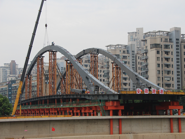 9月2日上午,蕪湖市中山橋主橋拱肋最后一個節(jié)段吊裝完成,至此,該橋主橋拱肋順利完成合攏。