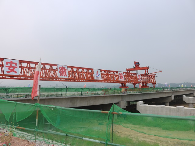 官埠河大橋位于樅陽縣官埠橋鎮,大橋全長約487.5m,共16跨,設計架梁192片,目前已完成架梁96片。夏季持續高溫天氣導致G347施工進度受到了一定程度影響, 8月中旬以來,為確保項目施工順利進行,項目部以開展“大干100天”勞動競賽活動為契機,抓住晴好天氣,制訂節點計劃,加大人員、機械設備投入,高效完成了梁板架設和橋面鋪裝施工任務。
