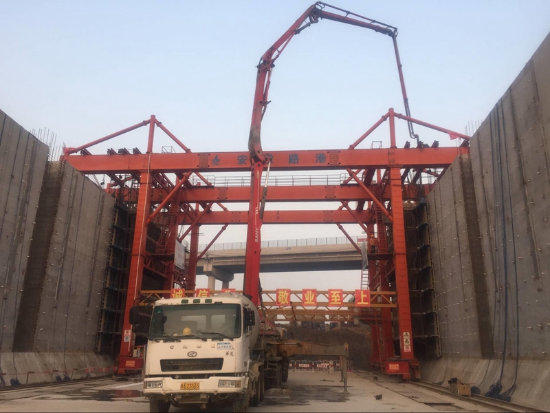 南坪船閘閘室墻順利完成混凝土澆筑