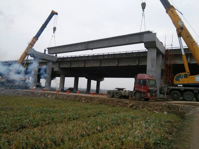 12月1日上午,合安高速改擴(kuò)建02標(biāo)杭埠河大橋首片30米預(yù)制箱梁架設(shè)成功。