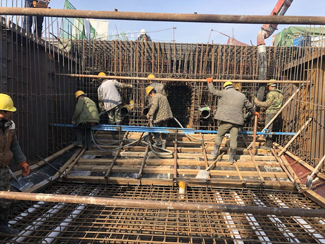 為按時完成施工任務,項目部參建人員積極響應大干號召,克服冬季施工不利條件、混凝土供應緊張等諸多困難,堅守崗位、頑強拼搏,于2月7日至8日,完成132#墩左幅現澆段底板澆筑、133#墩左幅14#塊澆筑、135#墩右幅現澆段底板澆筑。為保證冬施取暖和保暖工作滿足工程質量要求,項目部投入空調、土工布、棉被等對混凝土進行保暖。