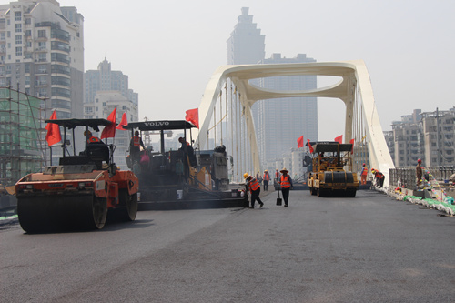 4月1日,隨著第一車環氧瀝青混凝土的進場,蕪湖中山橋橋面環氧瀝青正式開始攤鋪。按照蕪湖市政府五月初正式通車的要求,中山橋項目部已做好一切準備,步入通車倒計時最后階段。