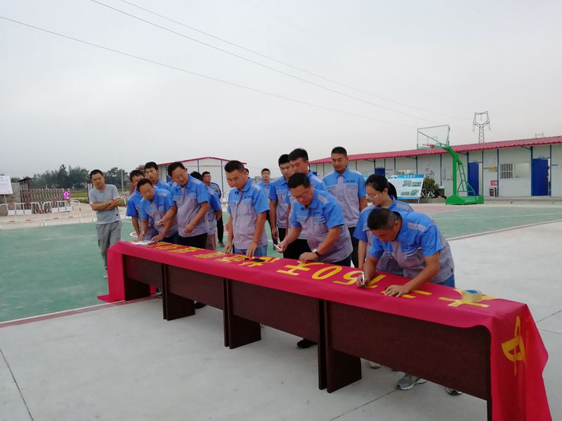 最后,全體職工在勞動競賽宣傳橫幅上鄭重地簽上了自己的姓名。