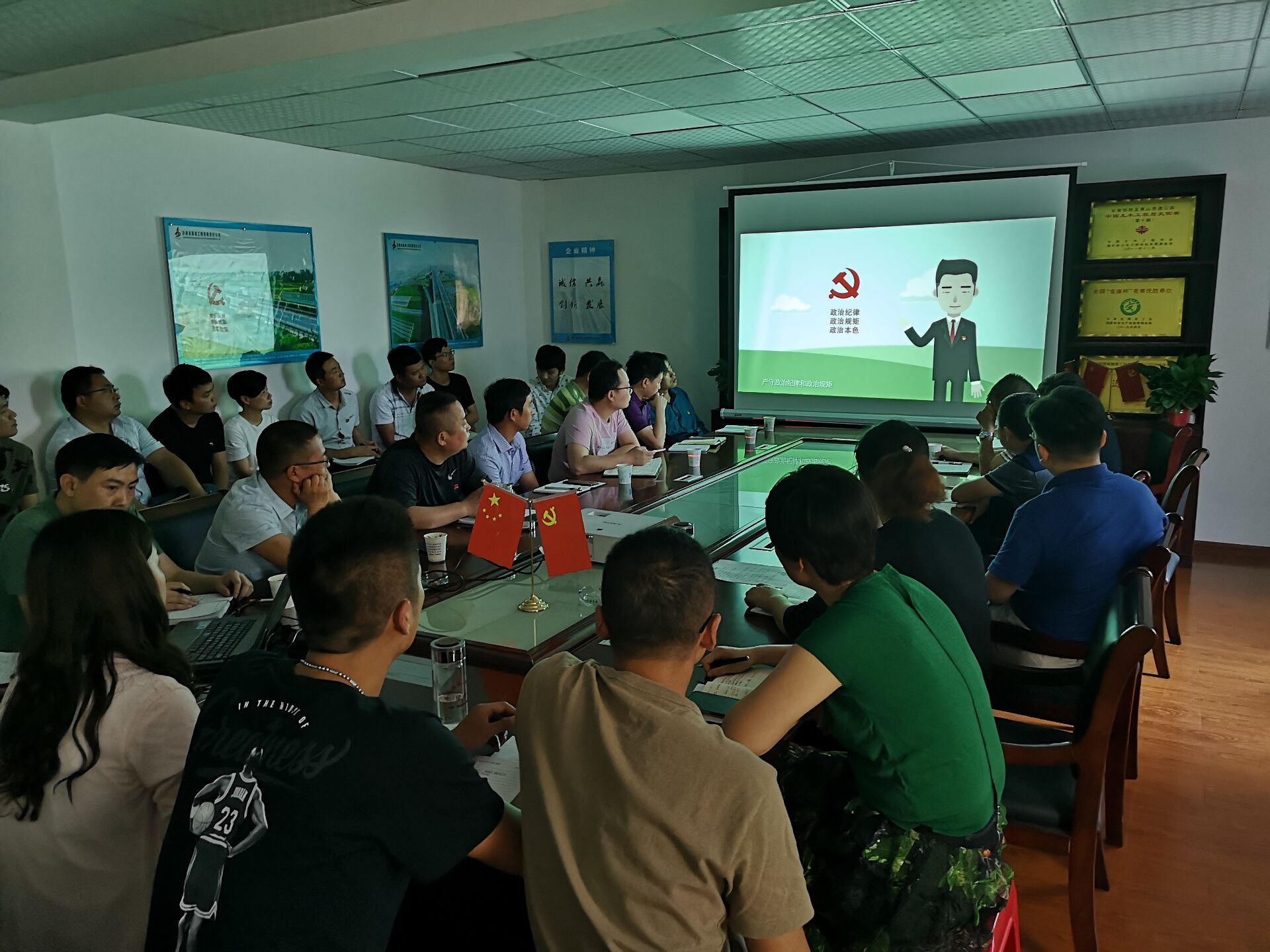 會議傳達了路港紀(2019)7號《關于端午期間進一步嚴明紀律加強作風建設的通知》文件精神,與會人員集中觀看了《中國共產黨黨員教育管理工作條例》系列動漫專題并進行測試,共同學習了《公司項目管理十條禁令》《公司作風十二不準》《公司項目內部招待八項規定》《公司管理人員廉潔自律準則》《公司黨員領導干部十條禁令》及《黨員干部應知應會知識手冊》等內容。會后,收繳了6月份黨費。