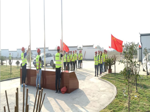早上七點(diǎn)整,在莊嚴(yán)嘹亮的《國(guó)歌》聲中升旗儀式拉開(kāi)帷幕,全體職工懷著對(duì)祖國(guó)的赤誠(chéng)之心,高唱國(guó)歌,目視著冉冉升起的五星紅旗,身為中華兒女的自豪感油然而生。