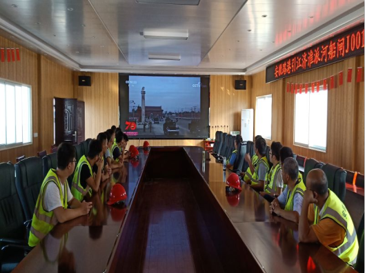 升旗儀式結(jié)束后,全體職工進(jìn)入會(huì)議室,集中觀看了閱兵儀式。屏幕上戰(zhàn)士們鏗鏘有力的回答,無(wú)不昭示著他們對(duì)祖國(guó)和人民的熱愛(ài),也激起了全體職工的愛(ài)國(guó)情懷,提升了項(xiàng)目部職工的凝聚力。派河船閘全體職工表示要以飽滿的工作熱情全身心投入到各項(xiàng)工作中去,認(rèn)真做好本職工作,為完成項(xiàng)目部全年生產(chǎn)任務(wù)目標(biāo)而奮斗,以實(shí)際行動(dòng)向祖國(guó)70華誕獻(xiàn)禮。