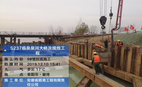 歷經23個小時的連續作業,臨泉S237項目9號墩于12月10日晚18時許順利完成承臺封底。