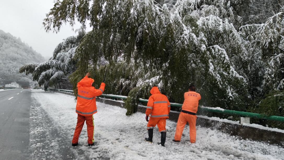 六潛小修養護項目部全體成員不懼風雪,一鐮刀、一鐵鍬、一掃把、一背心,連續奮戰十幾個小時,只為將覆蓋在冰天雪地下的道路“解封”。風雪無情人有情,風雪中,路港人上演著一個個動人的故事,展現出一幕幕感人的畫面,溫暖了整條高速公路。