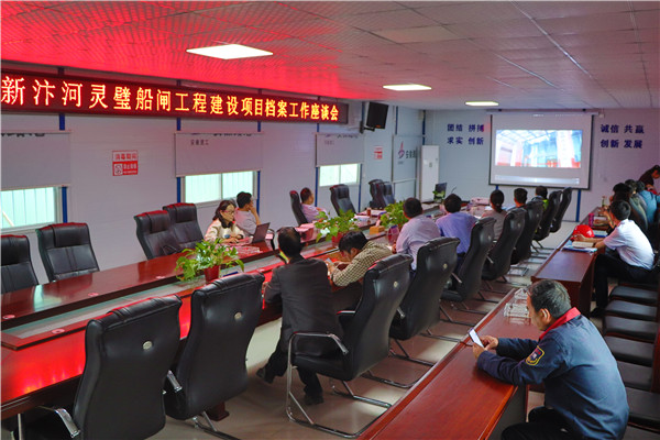 專家組一行首先深入施工現場,參觀工程實體進度,了解項目建設背景等情況。在查閱了項目檔案文件材料后,對靈璧船閘項目建設以來取得的成績表示認可,對項目檔案管理工作給予總體肯定。在工程建設項目檔案工作座談會上,專家組就如何做好檔案管理工作,促進檔案管理科學化、制度化和規范化進行了深入研討,對靈璧船閘項目檔案管理的完善也提出了寶貴的意見和建議。