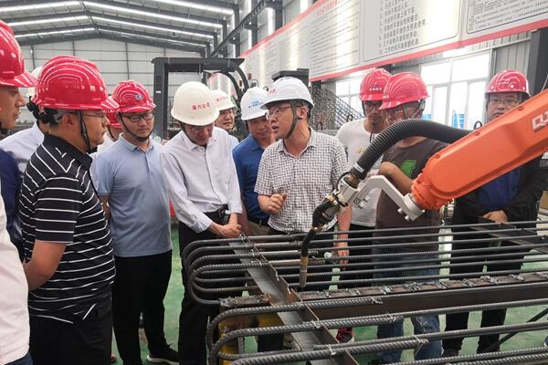 滁天高速預制標項目負責人向觀摩組詳細介紹了項目工程、場區規劃等情況。隨后,觀摩組一行深入鋼筋加工廠、拌合站、儲料倉、預制區和存放區等施工現場。觀摩組對項目安全文明施工、技術創新及標準化管理等方面的做法、經驗、成果給予高度贊賞。