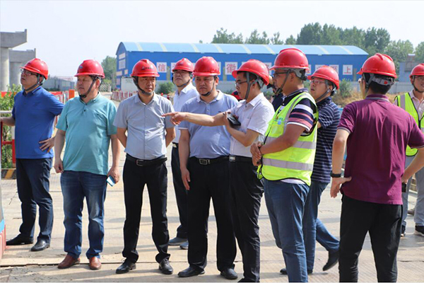 高學華檢查了項目預制梁場、鋼筋集中加工場、主橋工程施工現場,聽取了項目負責人關于項目質量、安全和進度等情況的匯報,對項目標準化施工、精細化管理、信息智能化管控及安全文明施工給予高度評價。